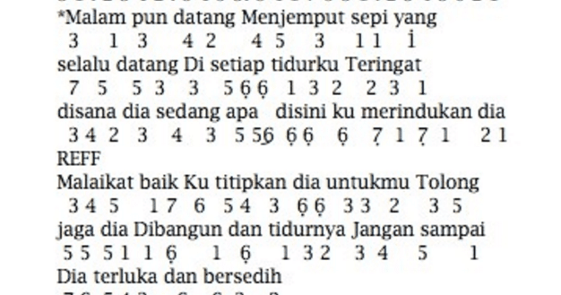 Not Angka Lagu Malaikat Baik Salshabila Pianika Recorder